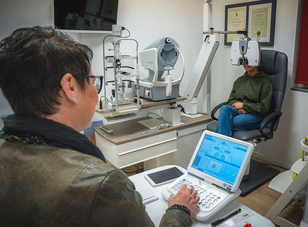 Der erste Schritt ist die exakte Vermessung Ihrer Augen mit modernster Technik. Wir sind erst dann zufrieden, wenn wir das für Sie richtige Korrektionsglas, die passende Brillenfassung oder auch die ideale Kontaktlinse gefunden haben. Qualität und Kundenzufriedenheit stehen in unserer Meisterwerkstatt immer an erster Stelle.